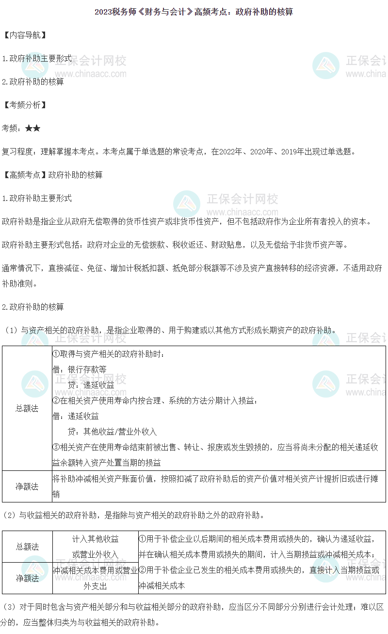 2023年税务师备考正在进行中,网校为各位考生整理了2023年税务师考试《财务与会计》第十五章的高频考点——政府补助的核算,正在复习的同学快来查收!