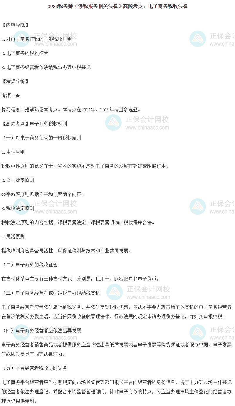 2023年税务师备考正在进行中,网校为各位考生整理了2023年税务师考试《涉税服务相关法律》第十五章的高频考点——电子商务税收法律,正在复习的同学快来查收!