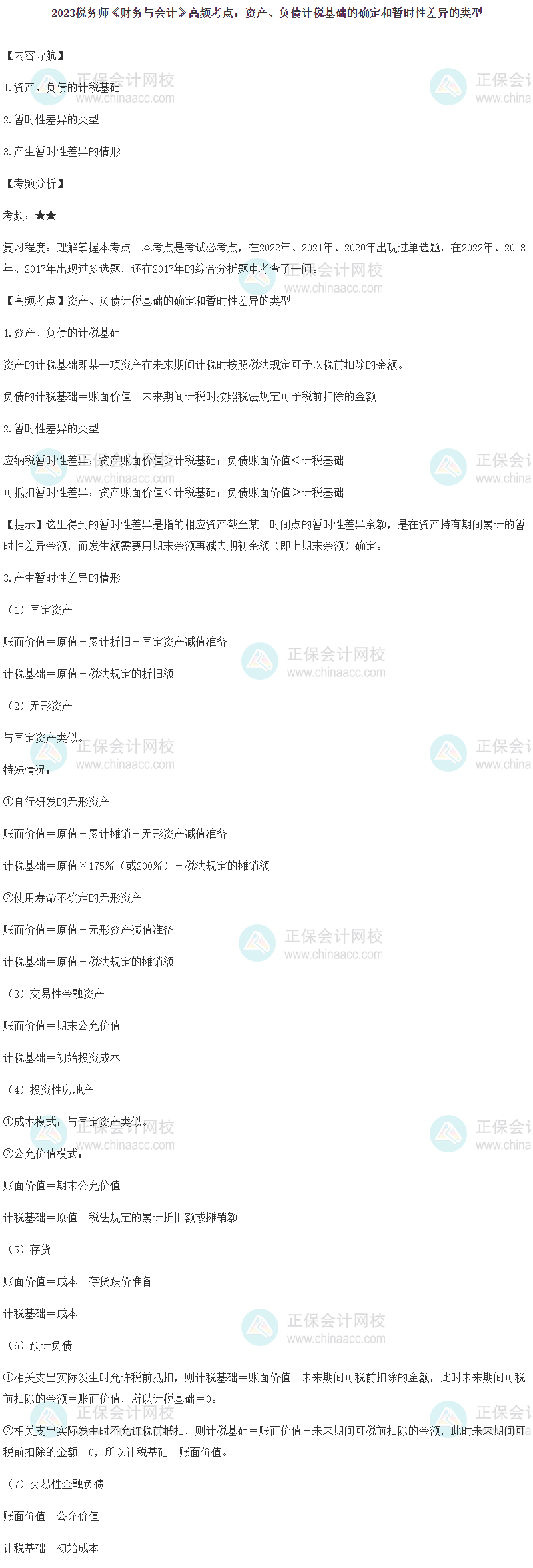 2023年税务师备考正在进行中,网校为各位考生整理了2023年税务师考试《财务与会计》第十六章的高频考点——资产、负债计税基础的确定和暂时性差异的类型,正在复习的同学快来查收!