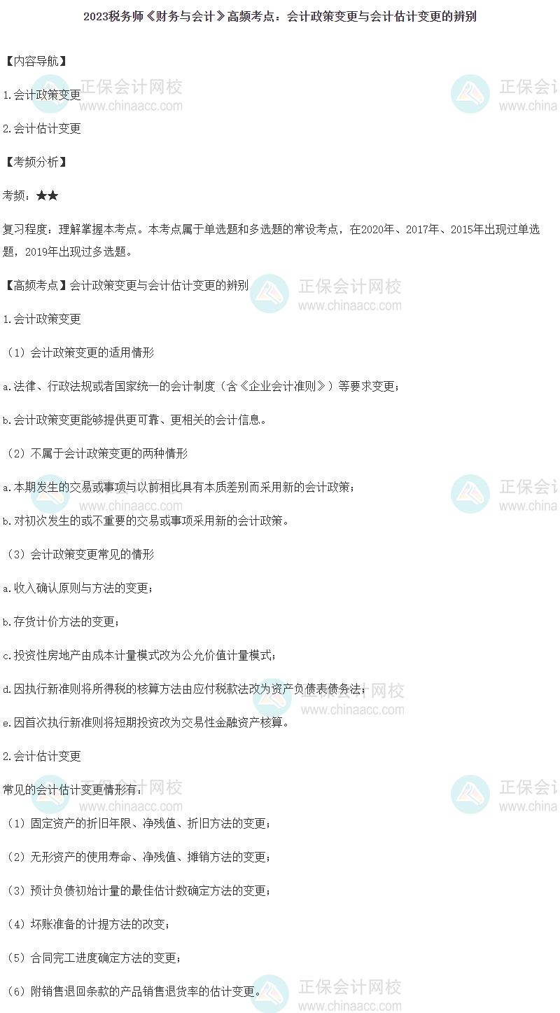 2023年税务师备考正在进行中,网校为各位考生整理了2023年税务师考试《财务与会计》第十七章的高频考点——会计政策变更与会计估计变更的辨别,正在复习的同学快来查收!