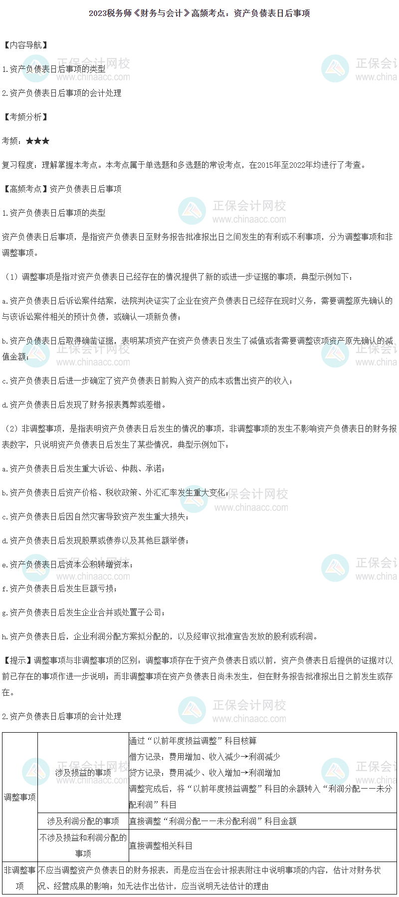 2023年税务师备考正在进行中,网校为各位考生整理了2023年税务师考试《财务与会计》第十七章的高频考点——资产负债表日后事项,正在复习的同学快来查收!