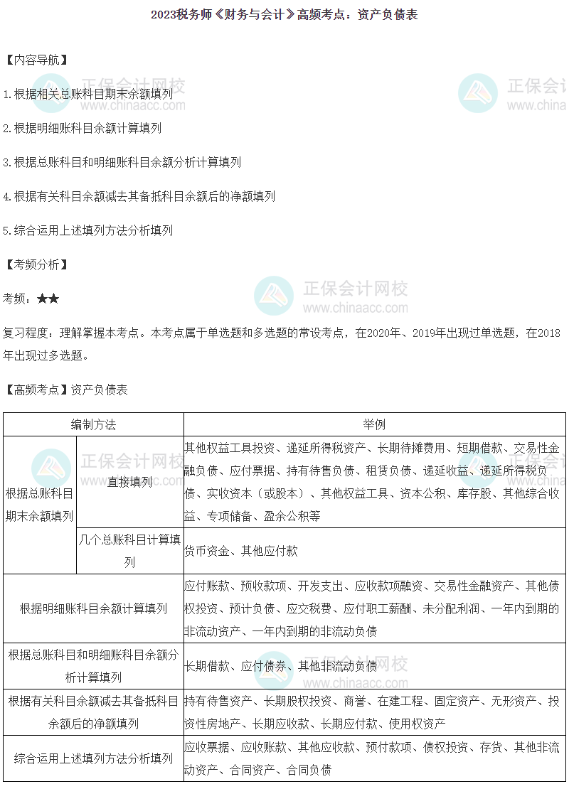 2023年税务师备考正在进行中,网校为各位考生整理了2023年税务师考试《财务与会计》第十八章的高频考点——资产负债表,正在复习的同学快来查收!