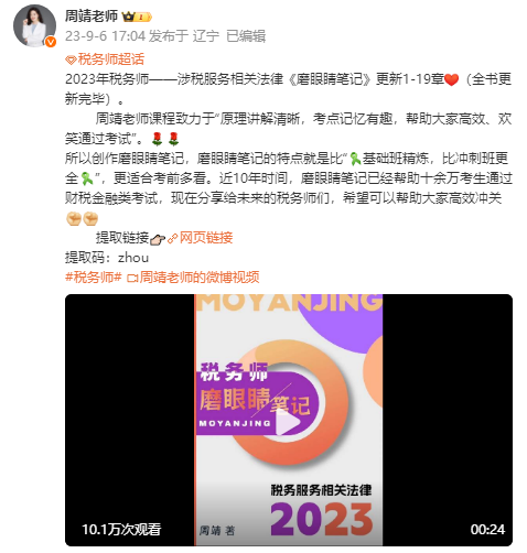 周靖老师深受同学们的喜爱,自己总结的“磨眼睛笔记”也是大家考前必看的复习资料,大家可以去周靖老师的个人微博中获取。