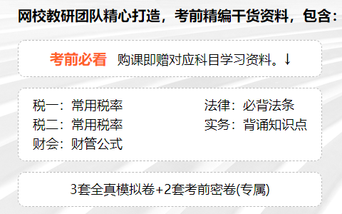 税务师基础知识点学完,做题不会,想在短时间内提高?密训班有老师带学,帮助大家梳理考点,传授答题技巧,还有精编干货资料,拿走看一看、背一背、练一练,助力冲刺!