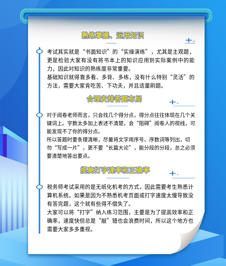 税务师考试的主观题需要考生用文字作答,但是答题绝不是在键盘上打字这么简单,还需要掌握一些方法,掌握一些能多拿分的技巧,快来看看吧!