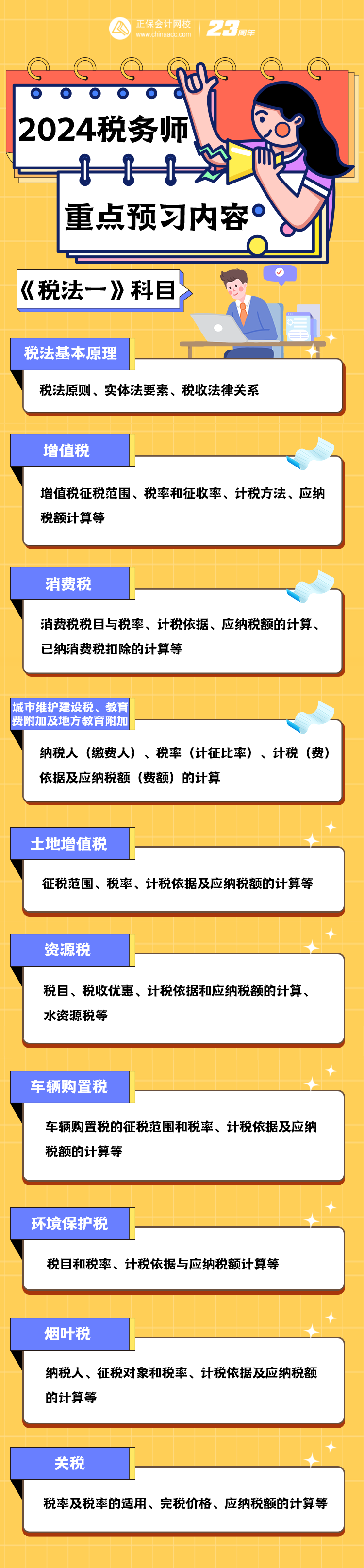 2024税务师新考季扬帆起航!想要赢在起跑线?那就从现在开始,预习打基础!2024税务师《税法一》哪些内容可以提前学习?一起来看看吧~