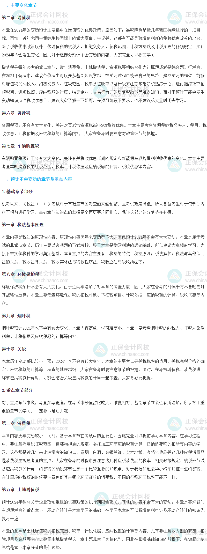 2023年税务师考试已经落下帷幕,不论结果如何,这都已成为过去,本着备考宜早不宜迟的原则,2024年的备考要拉开序幕了。在备考开始之时,我们可以先看一下2024年税法一教材预计变化的内容。