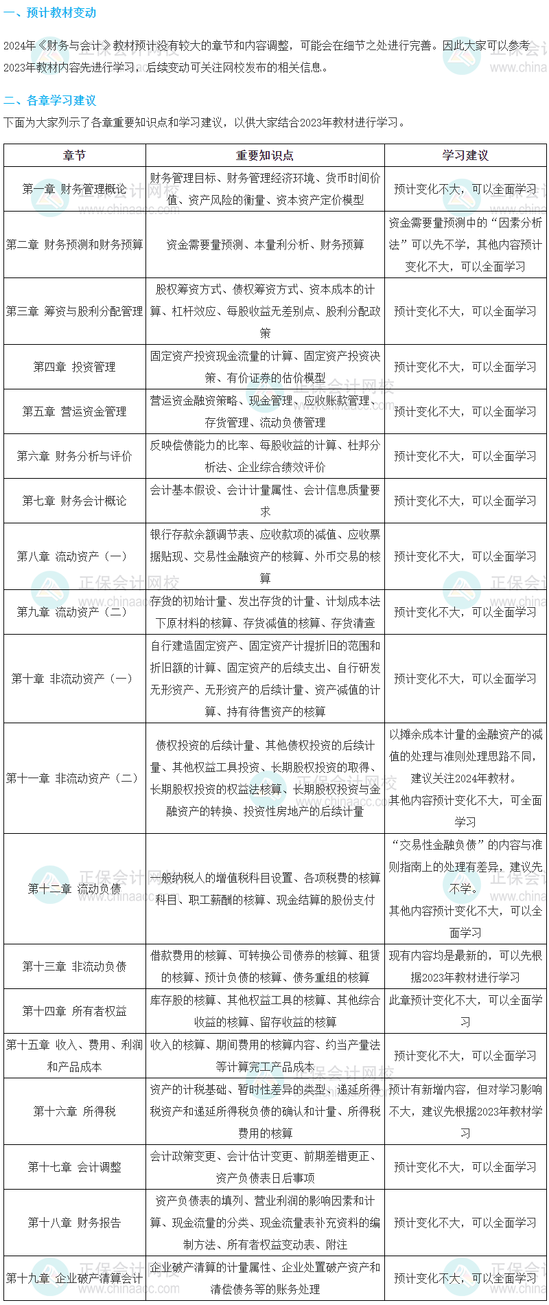 2023年的考试已经落下帷幕,通过2023年参加考试的考生反馈,税务师《财务与会计》的题目难度大、计算量大,吐槽声一片。那么对于计划2024年要参加该科目考试的考生来说,备考的压力就很大了。因此建议大家先结合2023年教材提前预习。如果要预习的话,首先要清楚哪些会变化,然后了解各章的学习重点。