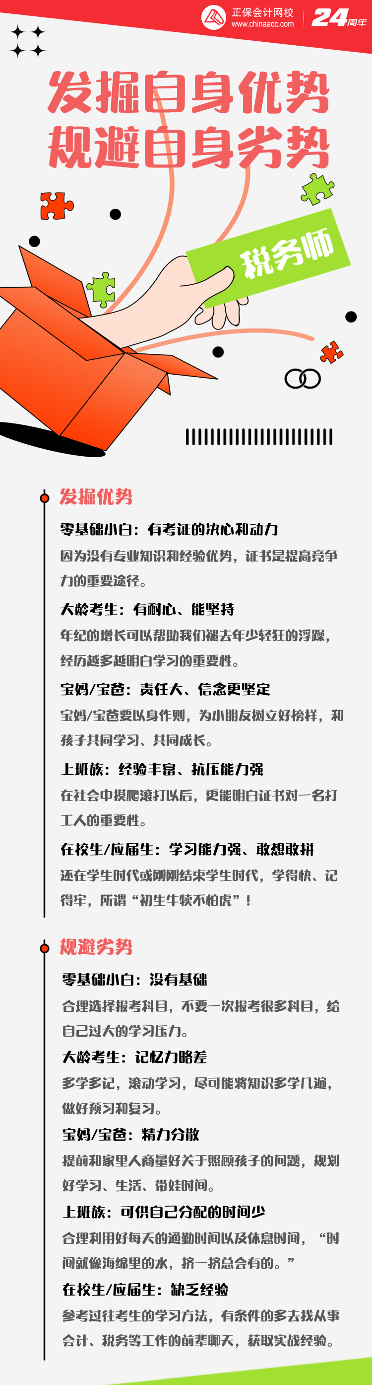 机会不等人,既然决定备战2024年税务师考试,那就不要轻易的放弃!机会留给有准备的人,踏实学习、努力备考,拿证指日可待,赶快学起来吧!