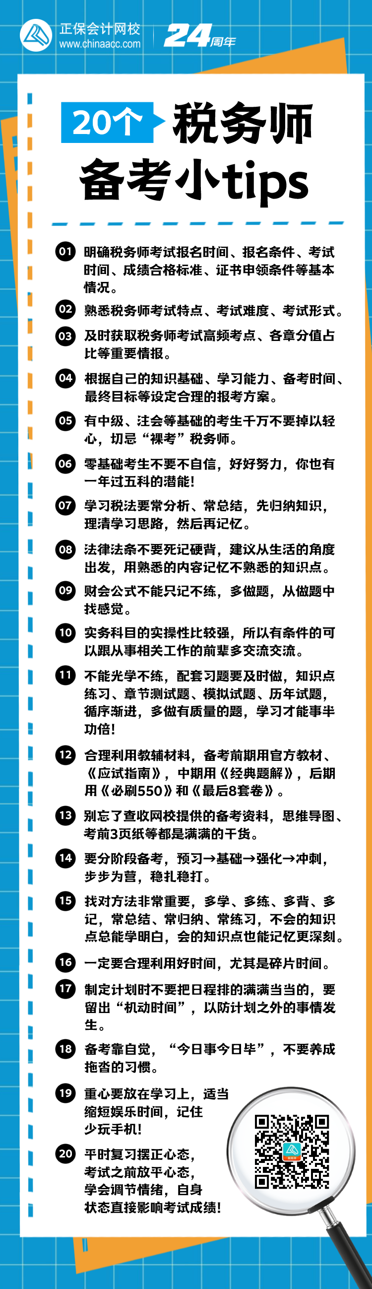 你打算参加2024年的税务师考试吗?税务师考试需要掌握的内容多,所以建议提早开始备考。下面是20个高效备考税务师的tips,赶紧查收吧!