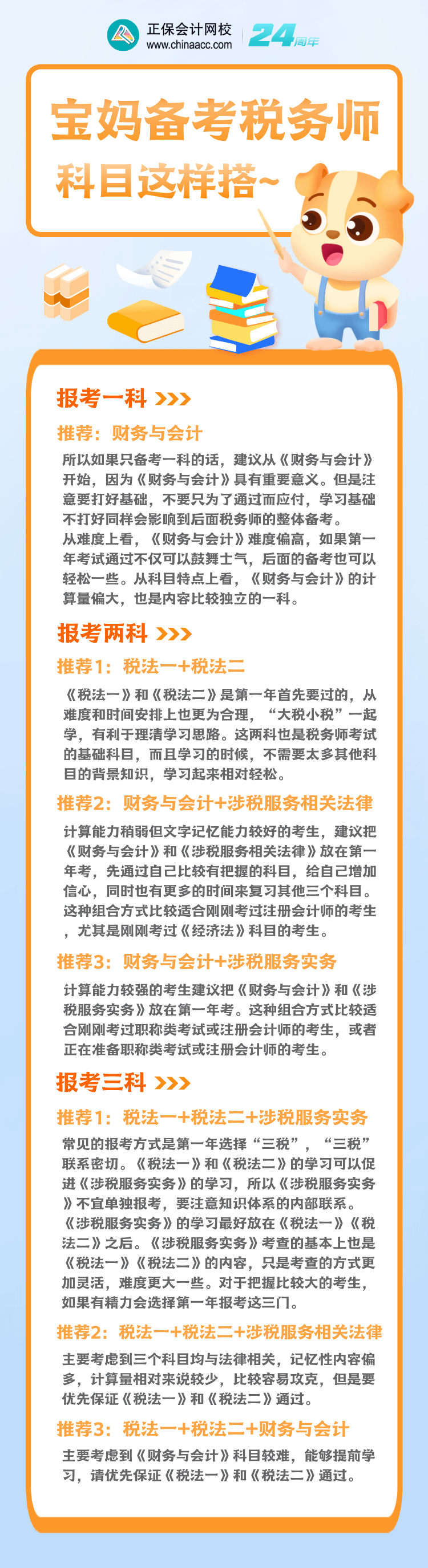 小编在整理去年税务师备考经验贴的时候发现,报考税务师的也有很多宝妈,而且成绩都还不错诶!如果您是今年想报考税务师的宝妈,建议搭配好考试科目,科目搭配好了,备考可以省时省力!