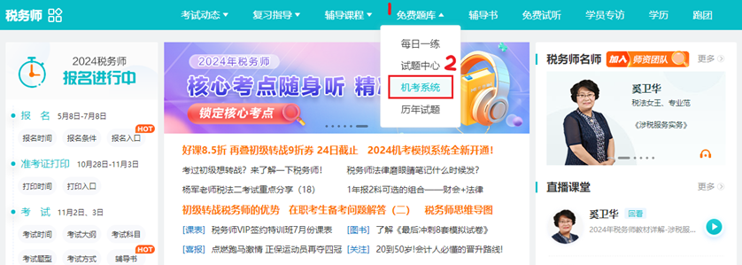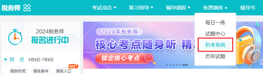 路径:正保会计网校→“税务师”栏目→“免费题库”→“机考系统”