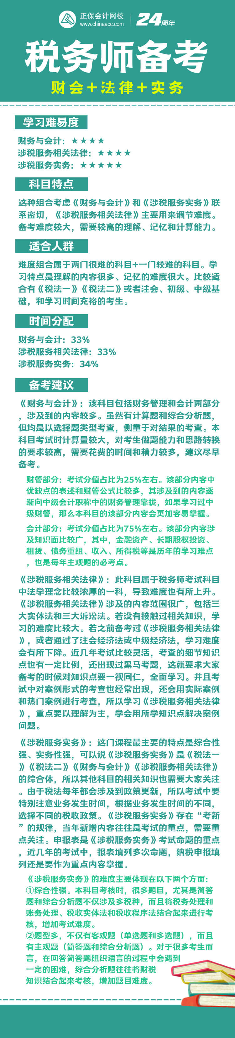 财会、法律、实务这三科属于税务师考试中难度较高的三科,所以备考难度不小,如果打算挑战一下的话,也建议大家根据自身情况谨慎考量。推荐同学们跟着老师备考,精准拿捏考试重点、难点,高效复习!了解/试听新课>>