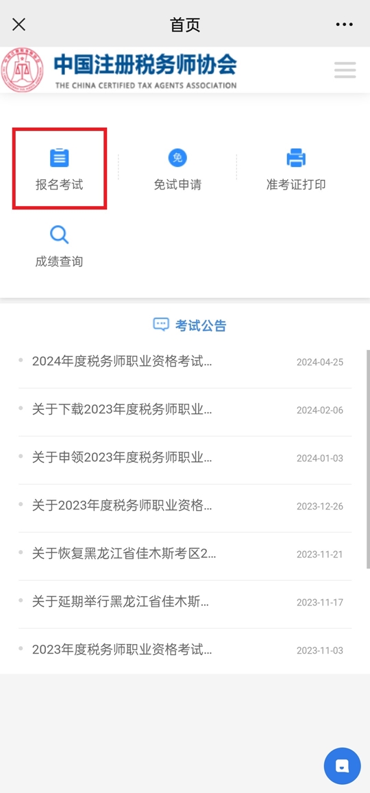 进入税务师职业资格考试报名系统,点击“报名考试”。