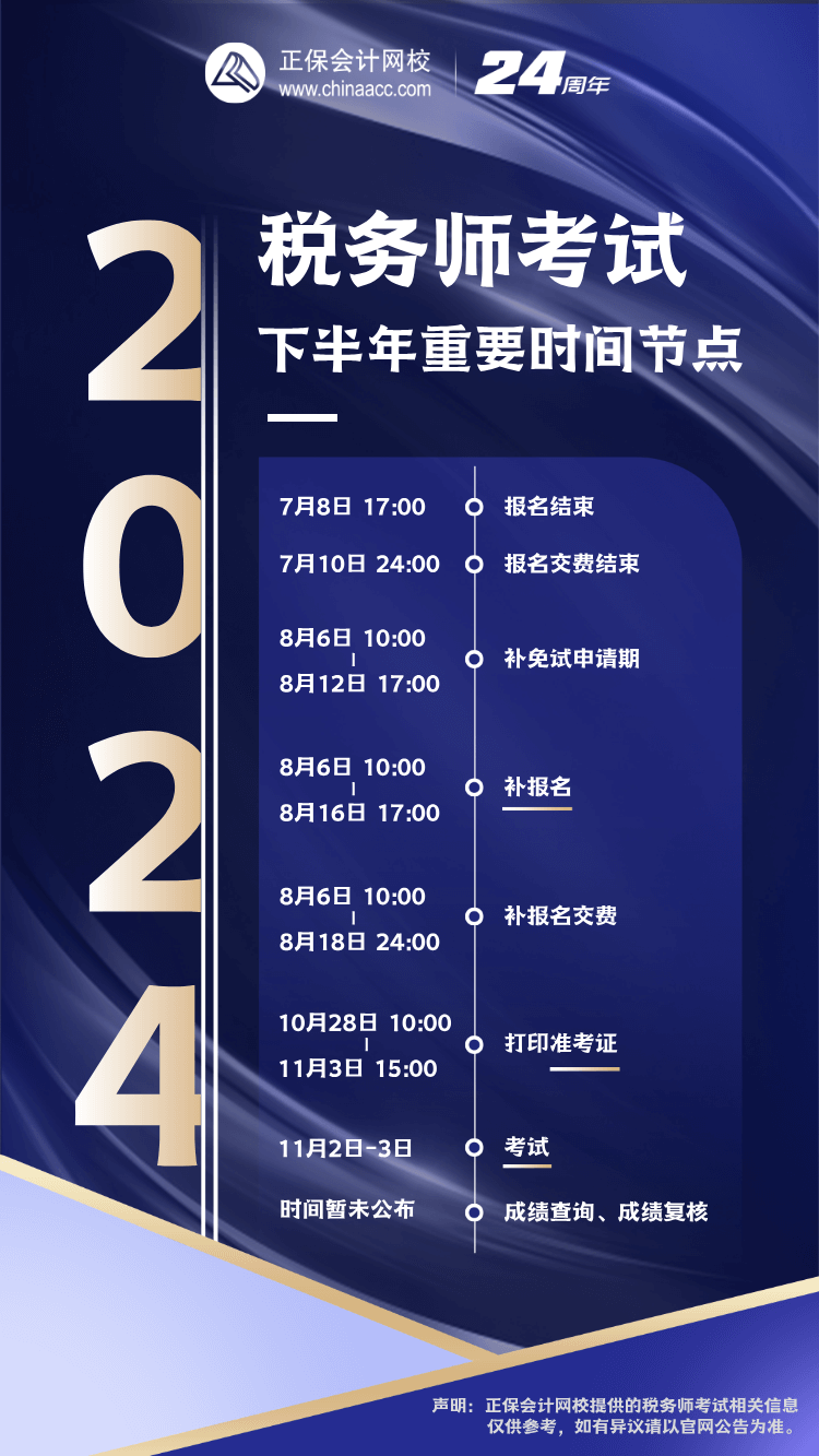 打算参加2024年税务师考试?就要好好备考!同时记得关注下半年的时间节点,尤其是准考证打印、考试等要重点关注!