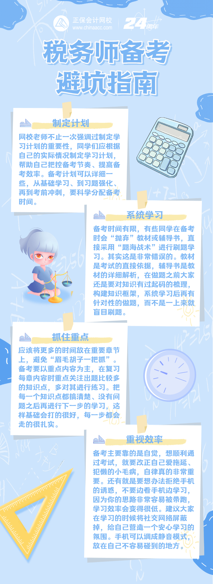 2024年税务师备考正在进行中,学习要讲究方法,备考要有策略,大家在复习的时候要找准方向和重点,千万别“见坑就跳”!