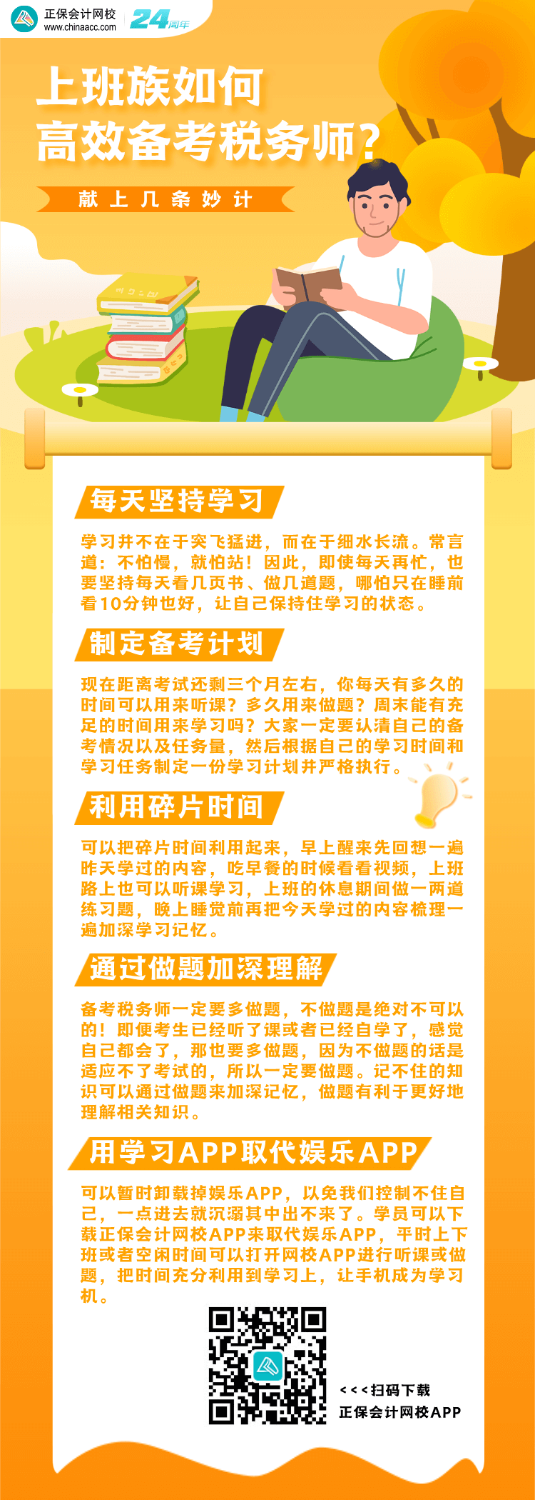 参加税务师考试的同学大多数是上班族,大家平时忙于工作,能拿出来学习的时间比较少、也比较分散,所以提高备考效率就变得尤为重要!下面给同学们献上几条妙计,希望能对大家有所帮助。