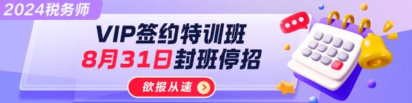 如果你是零基础,学习自制力又很差,需要老师陪伴督学,但又囊中羞涩,可以抓住分期免息购课的好机会!再次提示,2024年税务师VIP签约特训班8月31日封班停招!趁着免息优惠,赶紧加入学习,还来得及!了解课程详情>>