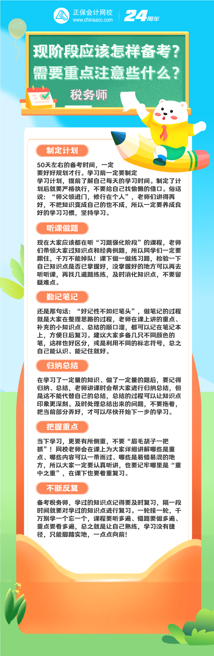 距离2024年税务师考试还剩1个多月,大家的备考重心也从基础复习转到了强化提升,那么现阶段应该如何备考呢?需要重点注意些什么呢?快来看看吧!