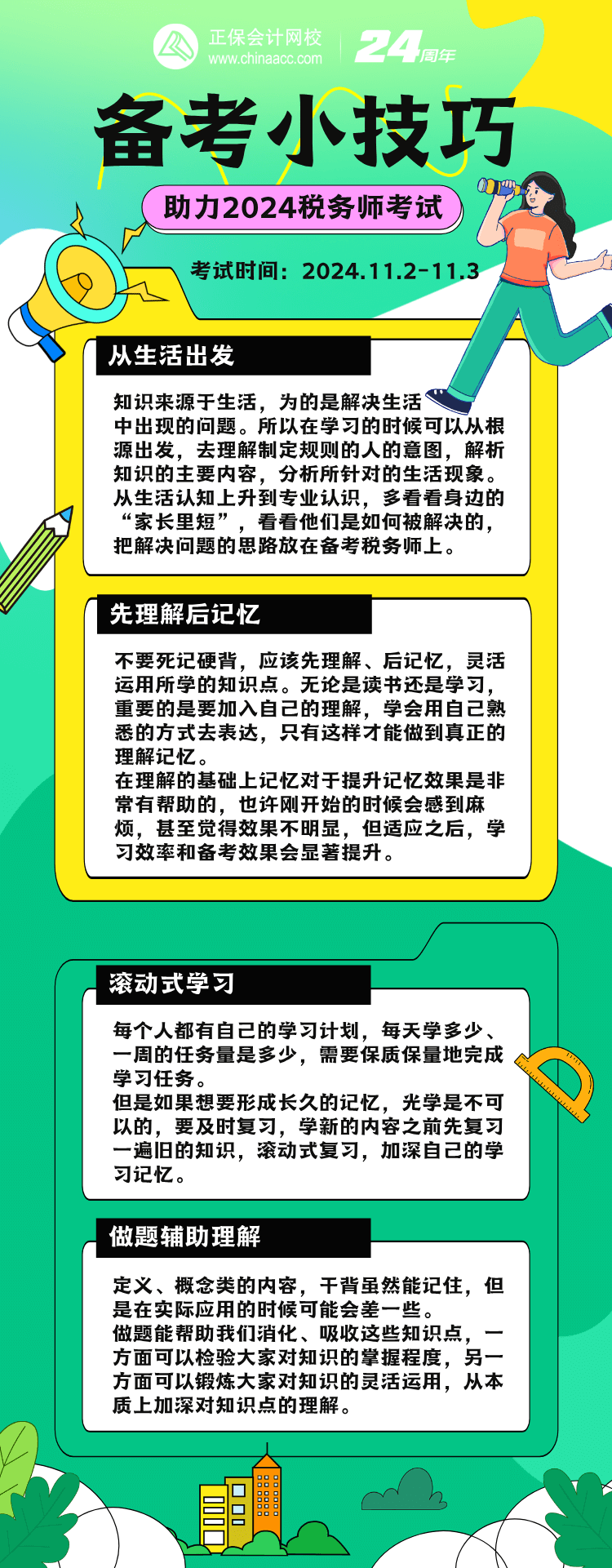 税务师考试需要记忆的内容这么多,应该怎么学习呢?有哪些好的方法可以帮助记忆呢?下面小编就给大家推荐几个备考小技巧,来围观一下吧!