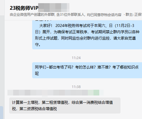 2024年税务师《税法一》考试落下帷幕,都考啥了?考后大家已经在群里讨论开了,咱们快来一起瞧一瞧,看看同学们发来的“现场报道”。