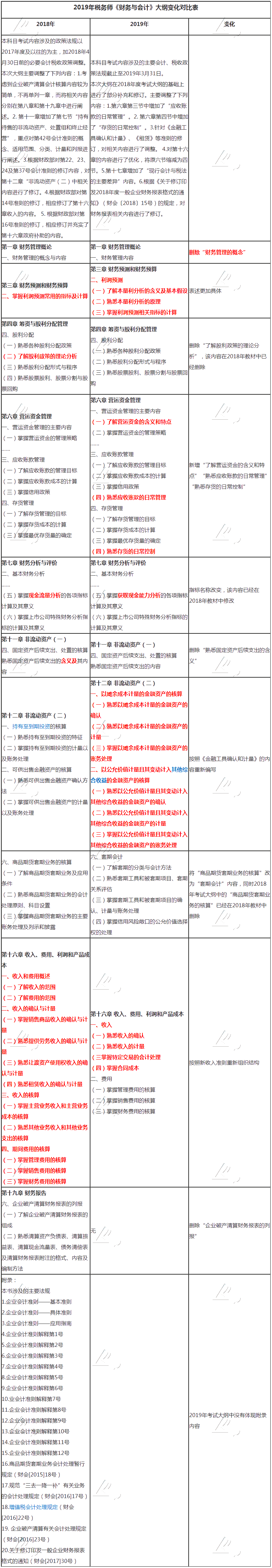 2019年税务师《财务与会计》大纲变化对比表