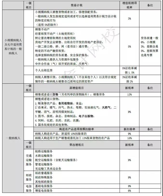 增值税税率16%→13%、10%→9%
