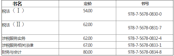 | 涉税服务实务 | 62.00 | 978-7-5678-0832-4 |
