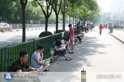 注税考生在烈日下复习
