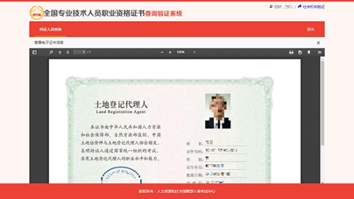 全国专业技术人员职业资格证书查询验证系统 (持证人员查询)