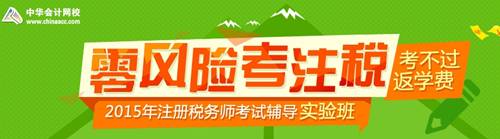 正保会计网校2015年注册税务师考试网上辅导全面招生,2015年注税辅导“实验班”服务升级,新增“在线自习室”和“老师直播课堂”,学员考不过,全额返学费,查看实验班协议书>>。适合希望老师督促安排,按照学习计划学习的学员。选报价格:2400元/门。快速购课>>