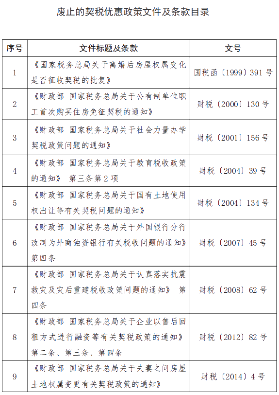 《中华人民共和国契税法》自2021年9月1日开始施行。财政部和税务总局日前联合发布《关于契税法实施后有关优惠政策衔接问题的公告》(财政部 税务总局公告2021年第29号),明确契税法实施后,废止和失效的契税优惠政策。具体有哪些?请往下查看详情↓↓↓