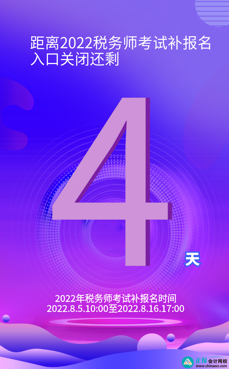 距2022年税务师考试补报名入口关闭还剩4天!想要参加2022年税务师考试的同学请抓紧时间。补报名入口>>