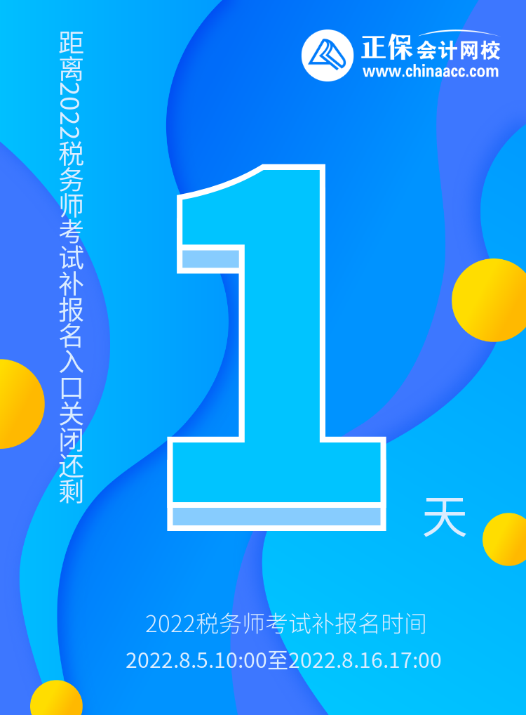 距2022年税务师考试补报名入口关闭还剩1天!想要参加2022年税务师考试的同学请抓紧时间。补报名入口>>