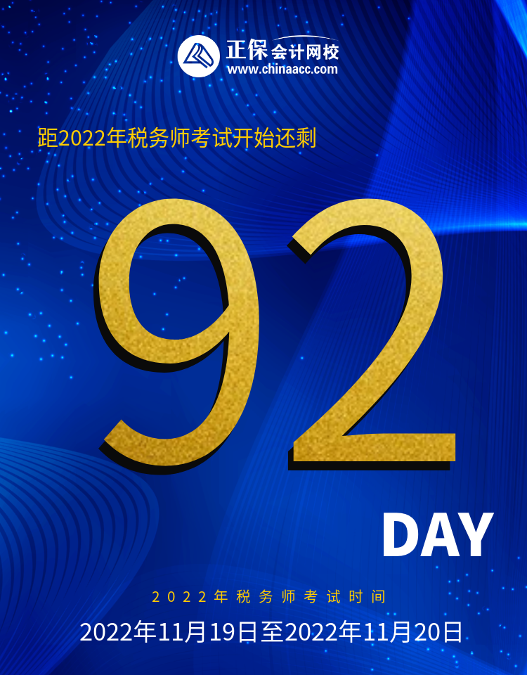 距2022年税务师考试还剩92天!请参加考试的考生牢记考试时间,切勿错过考试。