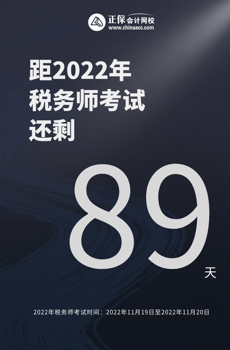 距2022年税务师考试还剩89天!请参加考试的考生牢记考试时间,切勿错过考试。