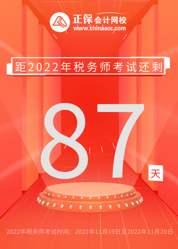 距2022年税务师考试还剩87天!请参加考试的考生牢记考试时间,切勿错过考试。