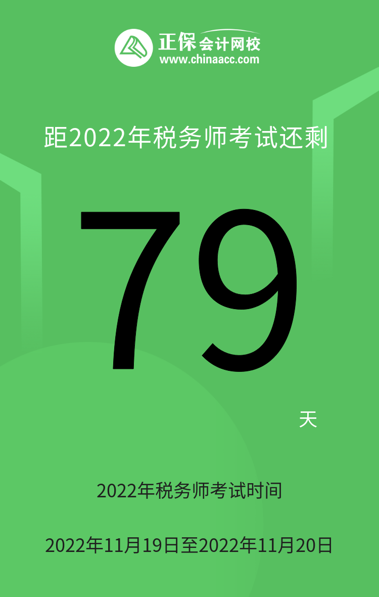 距2022年税务师考试还剩79天!请参加考试的考生牢记考试时间,切勿错过考试。