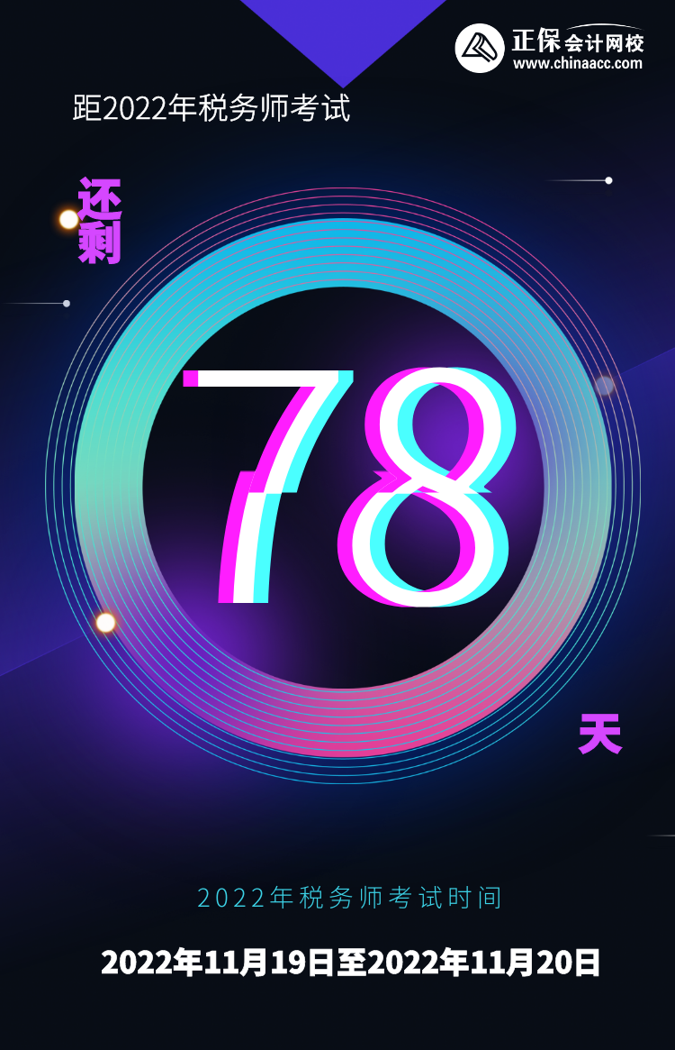 距2022年税务师考试还剩78天!请参加考试的考生牢记考试时间,切勿错过考试。