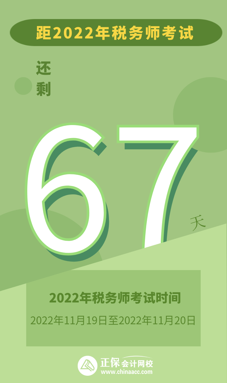 距2022年税务师考试还剩67天!请参加考试的考生牢记考试时间,切勿错过考试。