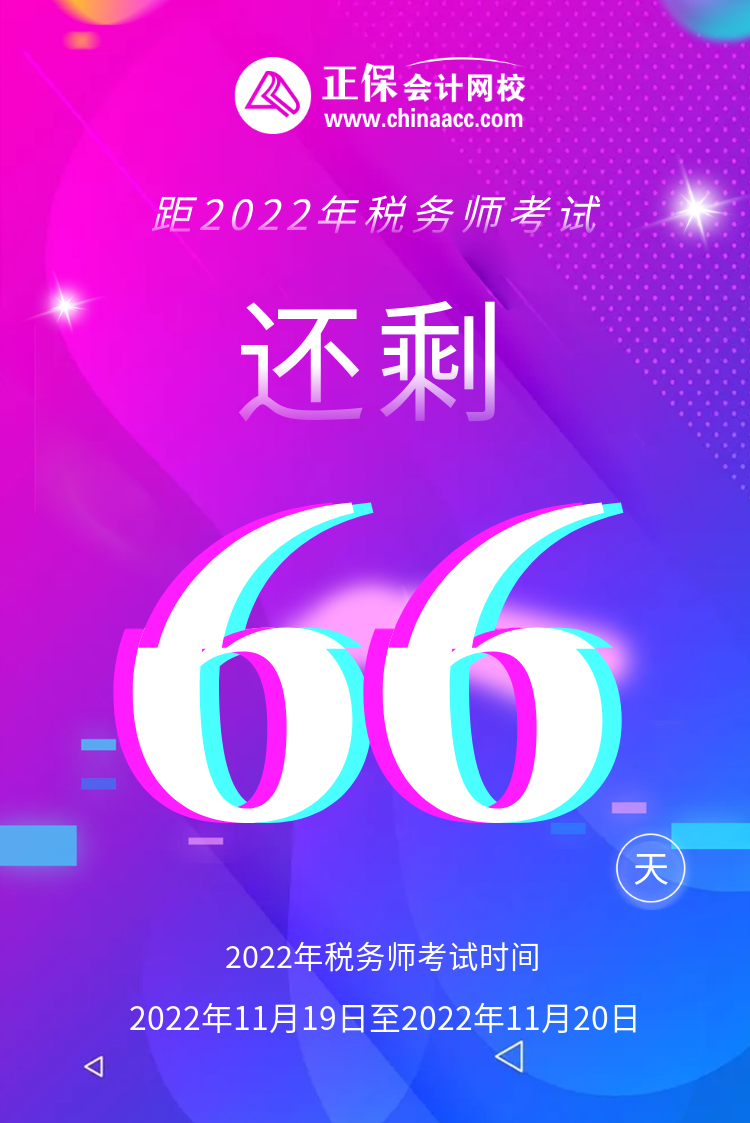 距2022年税务师考试还剩66天!请参加考试的考生牢记考试时间,切勿错过考试。