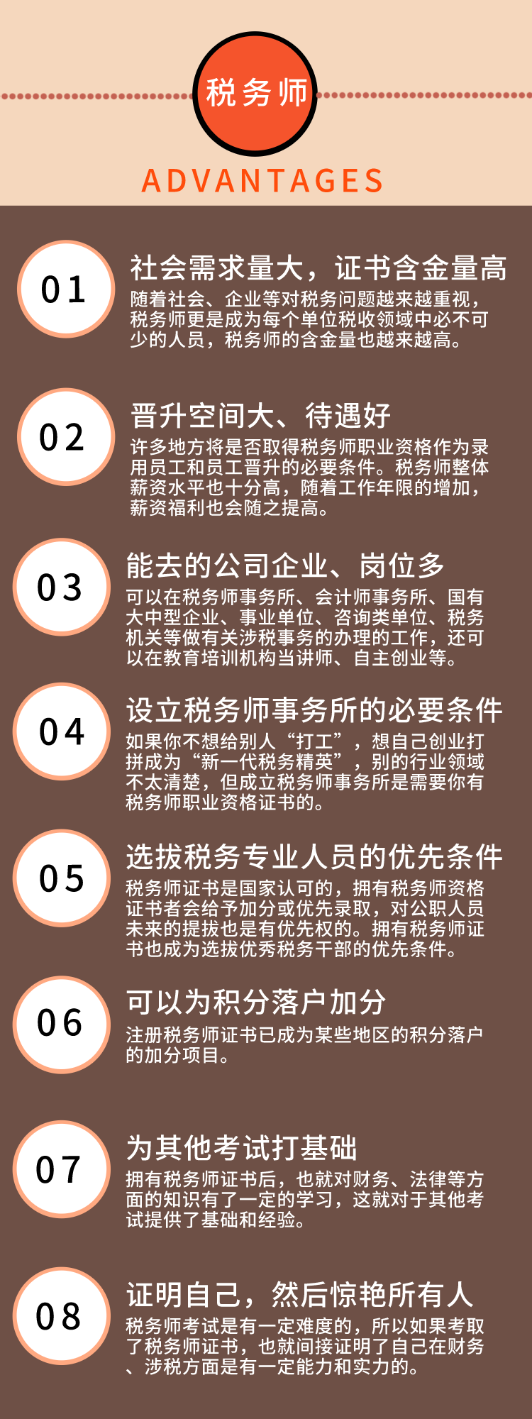 税务师拿掉“注册”二字后将会比以往含金量更高,不仅是税务专业人员职业能力的重要标识,还是设立税务师事务所的必要条件。而且税务师的职业资格,还是积分落户的加分项目,这一点对于漂一族可是有着致命的吸引力。