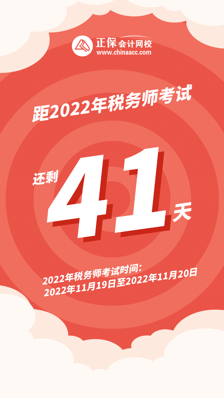 请参加2022年税务师考试的同学注意,距2022年税务师考试还剩41天!大家要牢记考试时间,放平心态,继续踏实备考!