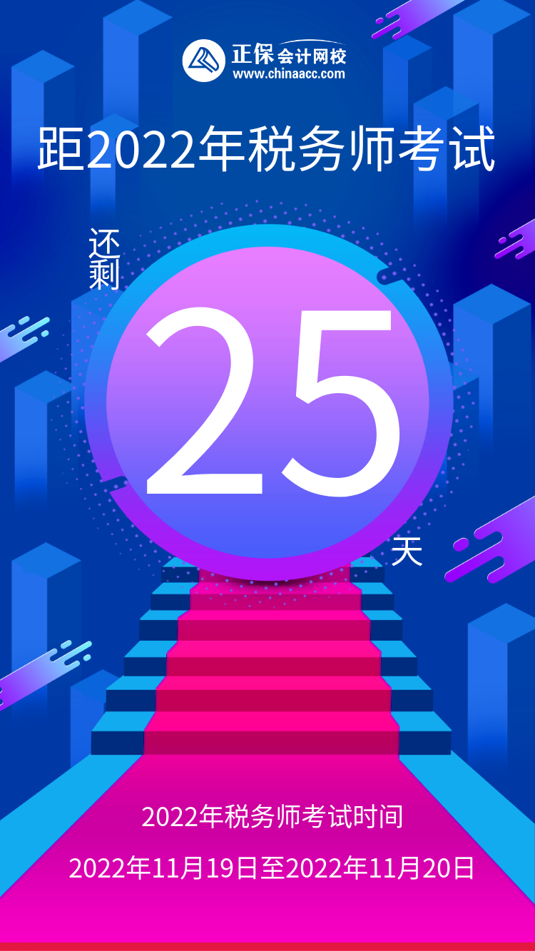 参加2022年税务师考试的同学请注意,距2022年税务师考试还剩25天!大家要牢记考试时间,放平心态,继续踏实备考!