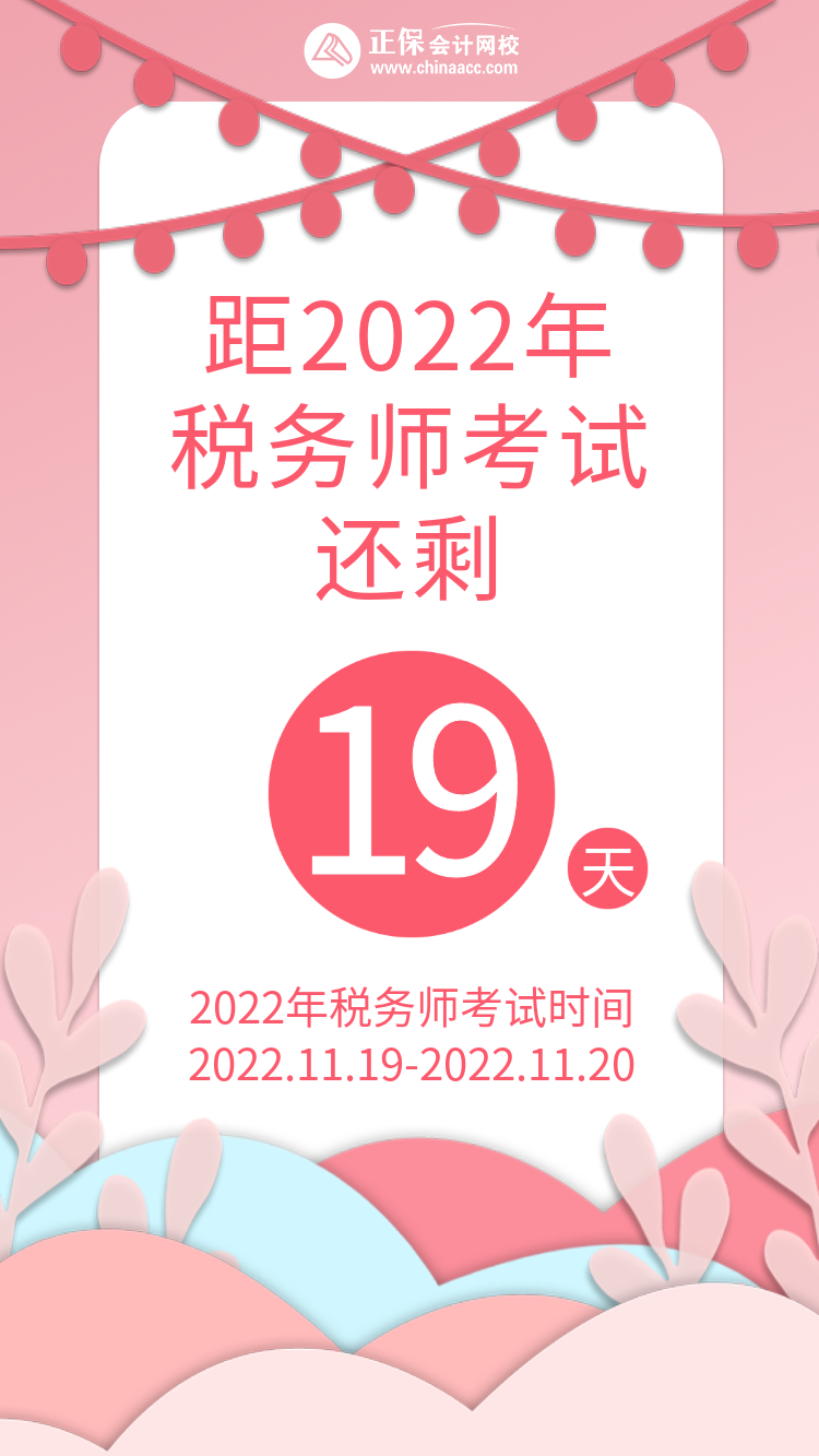 参加2022年税务师考试的同学请注意,距2022年税务师考试还剩19天!大家要牢记考试时间,放平心态,继续踏实备考!