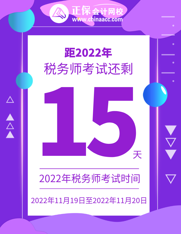 参加2022年税务师考试的同学请注意,距2022年税务师考试还剩15天!