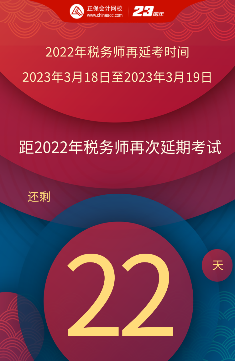 参加2022年税务师再次延期考试的同学请注意,距2022年税务师再次延期考试还剩22天!