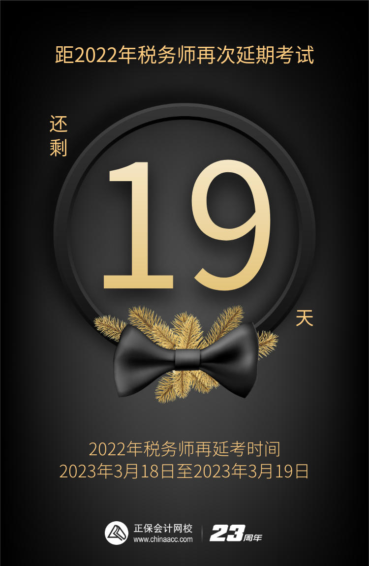 参加2022年税务师再次延期考试的同学请注意,距2022年税务师再次延期考试还剩19天!