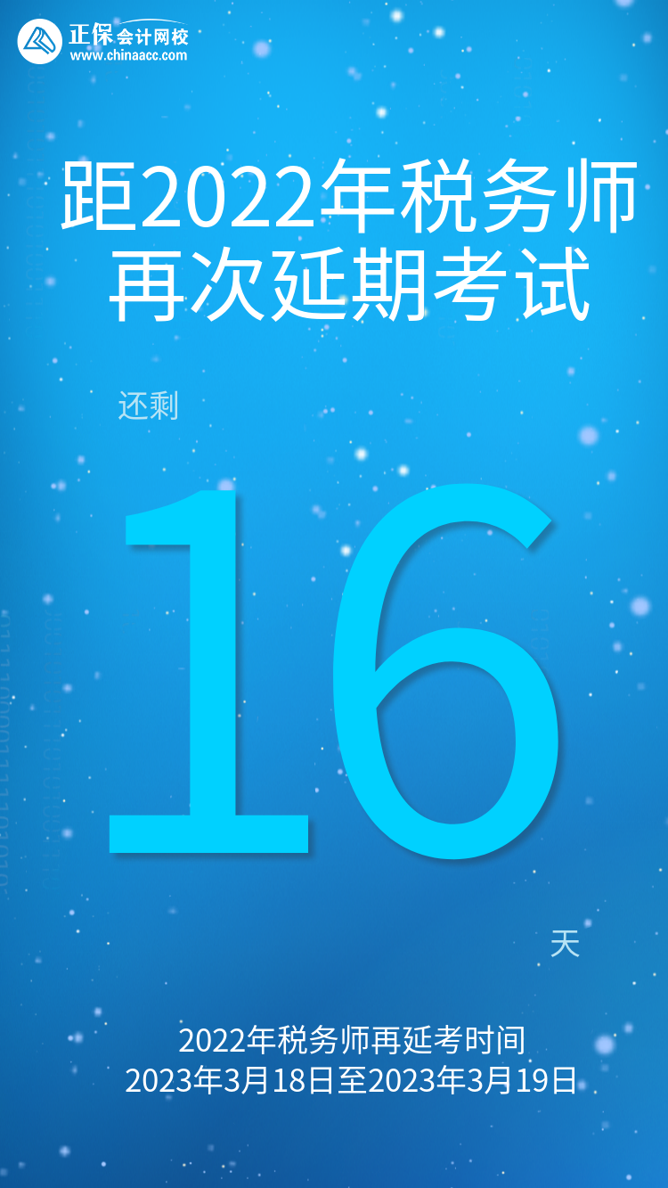 参加2022年税务师再次延期考试的同学请注意,距2022年税务师再次延期考试还剩16天!