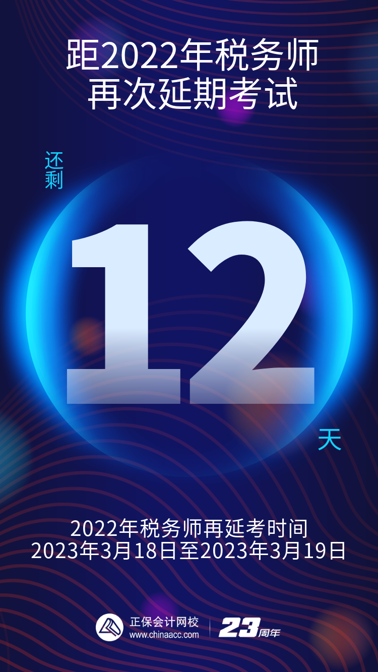 参加2022年税务师再次延期考试的同学请注意,距2022年税务师二次延期考试还剩12天!
